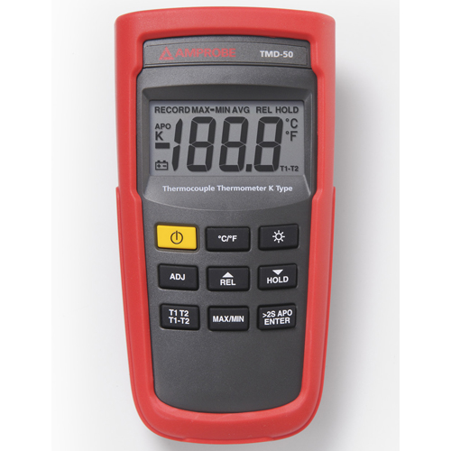 The Amprobe TMD-50 Thermometer is the professional choice for HVAC technicians, electricians, research, industrial process, and quality control, these thermometers offer dual inputs for easy super-heat and sub cool temperature measurements.